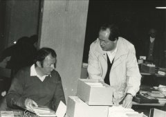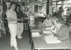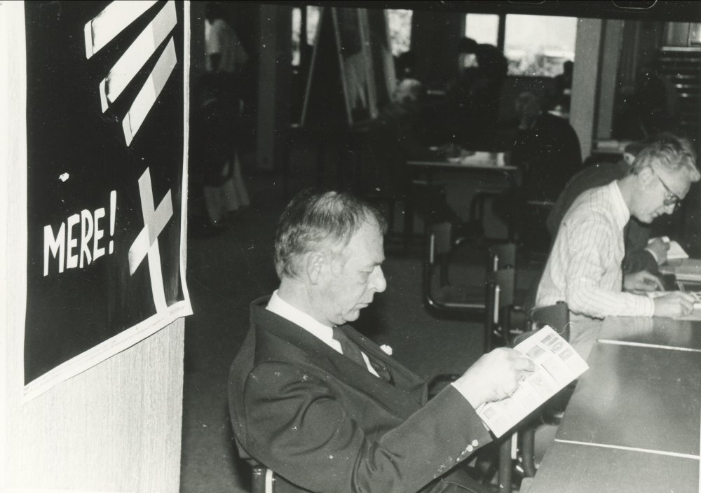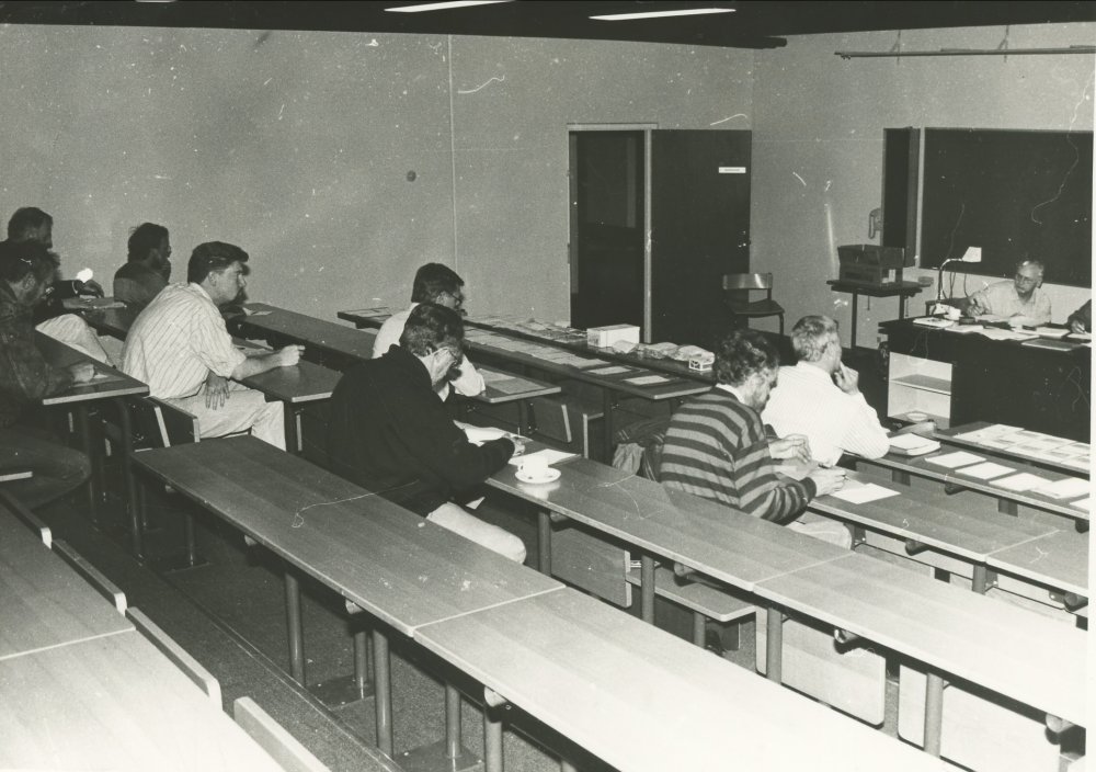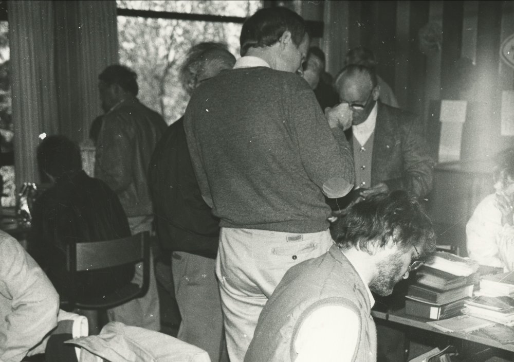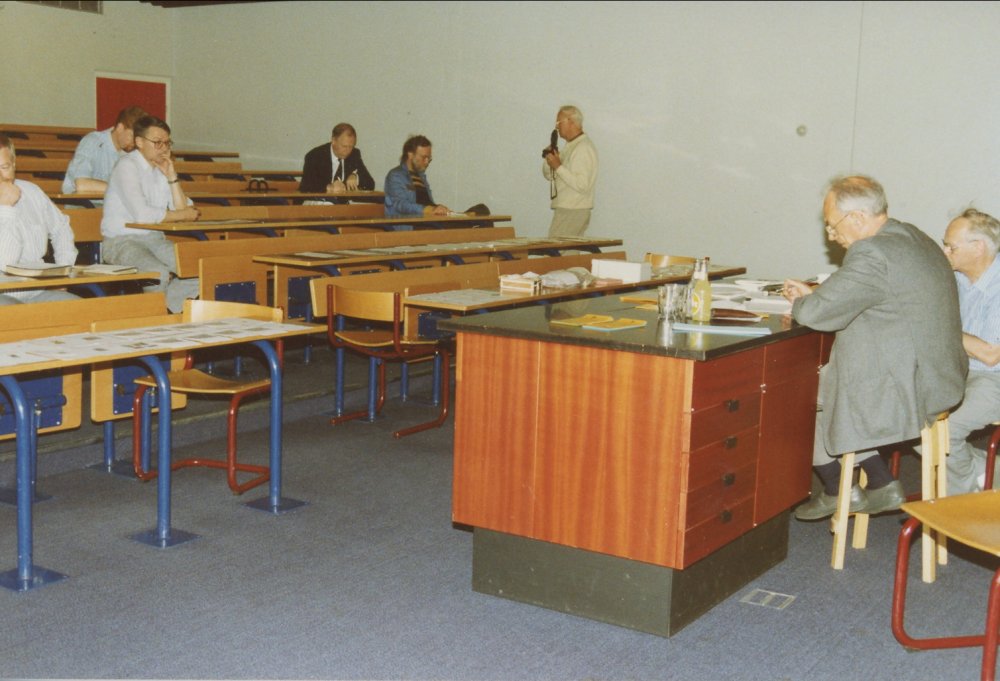 Møde i Forum Horsens. Til venstre forrest Ivan Jensen og Niels F. Bundgaard. [...]Fra højre mod venstre Finn Skriver Laursen, Holger Degn, Christian Rimestad og Henrik Plovst. Foto Frank Miller.