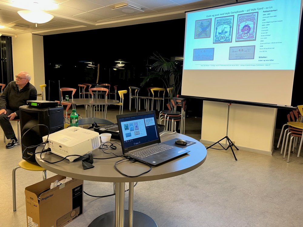 Projektoren blev første gang anvendt ved Peter Skov Nielsens foredrag om Vejles posthistorie om Vejle Posthus og de tilhørende brevsamlingssteder. Dette krydret med materiale fra nogle udvalgte posthistoriske begivenheder den 08.02.2023.