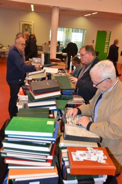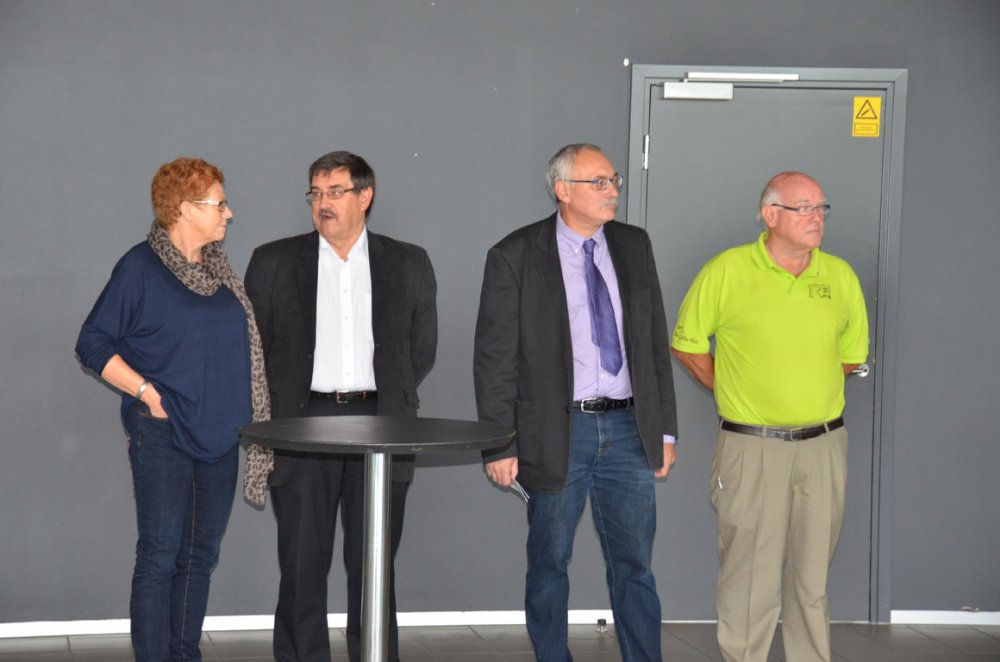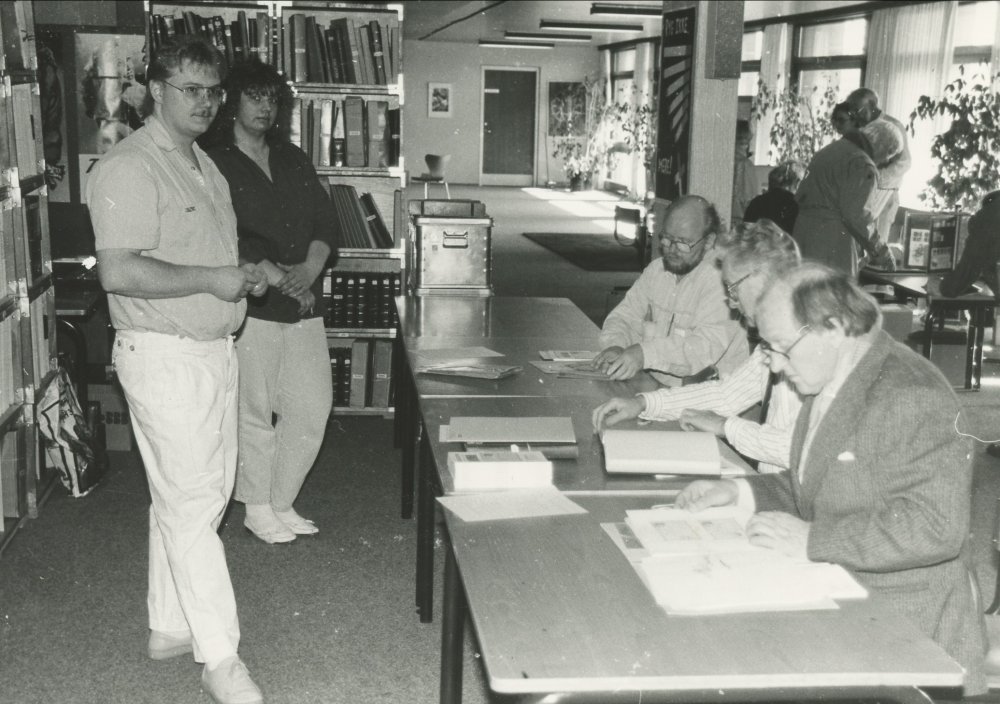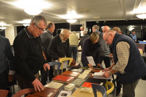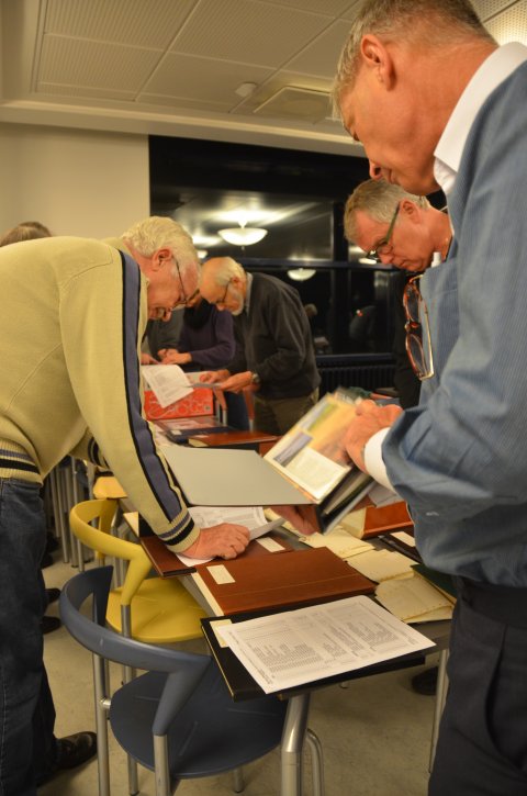 Fra venstre mod højre: Kulturudvalgsformanden Lone Ørsted, Formanden for DFF Søren Chr. [...]Jensen, Formanden for Horsens Filatelistklub Henrik Plovst og Holger Degn.