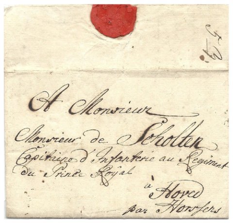Til Monsieur de Scholten, Captain de Infanterie au Regiment du Prince Royal…